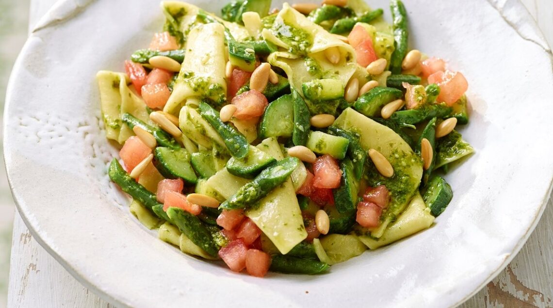 Maltagliati fatti in casa con pesto e verdure