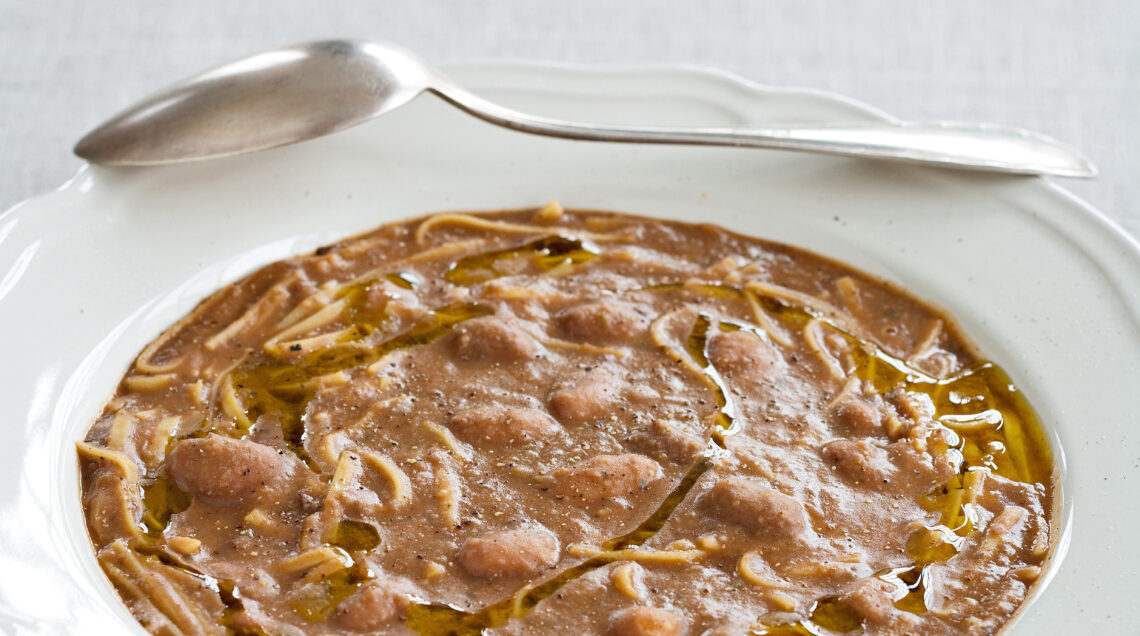 Un'alternativa gustosa, arricchita con il pesto di oliva, sono i maltagliati con fagioli, con i ceci provate la zuppa con lardo e rosmarino, la zuppa di fagioli freschi, la zuppa di ceci al cardamomo, minestra di verdure e borlotti.