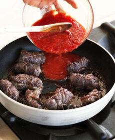 Mescolate delicatamente e versate il resto del sugo, distribuendo le braciolette.