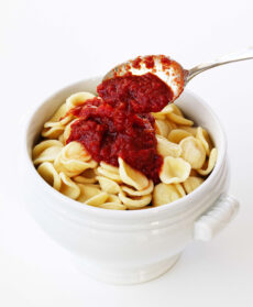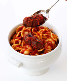 Servite subito le orecchiette con il sugo di braciole, ancora ben calde