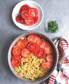 Pochi e semplici ingredienti per un primo piatto vegetariano cotto al forno e profumato con prezzemolo e basilico