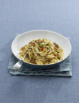 4) Cospargi la pasta con il pane tostato, suddividi nei piatti singoli, decora con le mandorle tritate tenute da parte e servi.