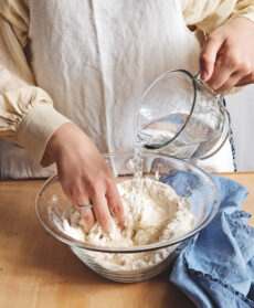 Versate 450 g di farina in una ciotola, fate una fontana e versatevi al centro 1 cucchiaino di sale, 1 cucchiaio di olio e 2,7 dl di acqua tiepida. Impastate fino ad avere un composto omogeneo e liscio, cospargendo ogni tanto il piano di lavoro con la farina rimasta. Coprite il panetto ottenuto con una ciotola rovesciata e lasciate riposare per 30 minuti.