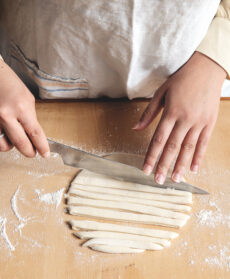 Solo acqua e farina per la pasta fresca fatta in casa e un condimento semplice ma sapido con pane, pecorino e olio