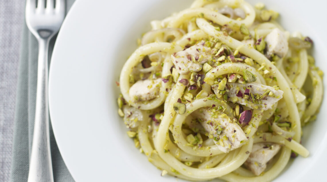 1 Tagliate il pesce spada a tocchi regolari non troppo piccoli. Tritate grossolanamente i pistacchi. Cuocete la pasta al dente in una pentola con abbondante acqua bollente salata.