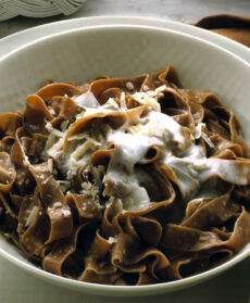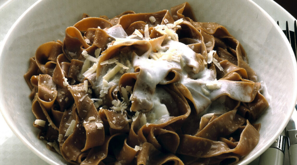 Pasta fresca all'uovo al sapore di cioccolato condita con una sasa cremosissima di formaggio, burro e panna. Per sorprendere i vostri ospiti