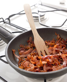 Un primo di pasta fresca condito con un'accoppiata gustosa, frutta e prosciutto. Anche per ospiti dell'ultimo momento
