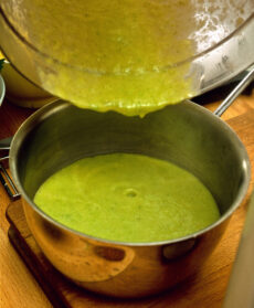 4) Frullali, versa il passato in un tegame e condiscilo con sale, pepe e un filo di olio.