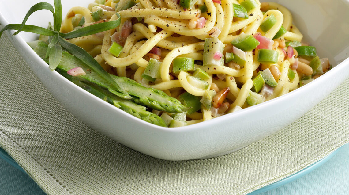 Se hai voglia di portare a tavola un po’di Puglia in una giornata di festa, scegli di preparare i troccoli con ragù di asparagi e pinoli di Sale&Pepe: riuscirai a sorprendere i tuoi ospiti in poche mosse!