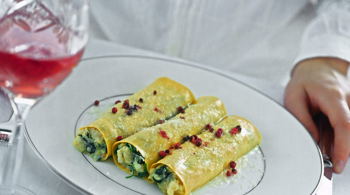 I cannelloni di baccalà sono farciti con una ricca composta di pesce e spinacini novelli. Delicati per il sapiente trattamento dell’aglio, sbollentato e passato al setaccio, possono essere la portata principale di un menu ricercato, adatto agli ospiti come alle occasioni speciali.