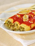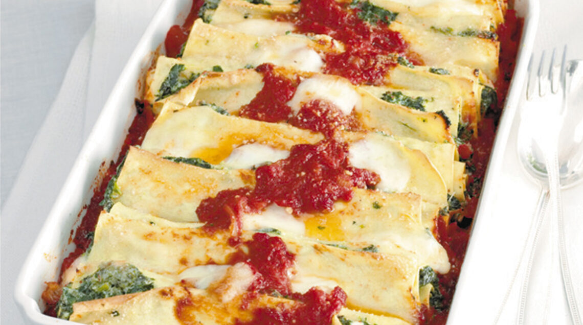 I cannelloni di magro sono solitamente farciti con spinaci e ricotta di mucca, un binomio vincente che si presta a molte varianti sia di ortaggi, carciofi ed erbette per esempio, sia di formaggi, ricotta romana e crescenza come in questo caso, ma anche robiola o mascarpone. Il condimento al pomodoro rende vivace il piatto, ma potete completare anche con semplice besciamella o panna e cospargere con grana.