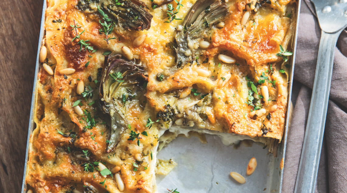 4 Versate sopra il fondo di cottura dei carciofi e infornate la lasagna a 180° fino a doratura (circa 20 minuti).