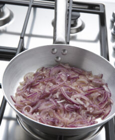Sbucciate le cipolle e affettatele sottili; scaldate 3-4 cucchiai d'olio in una casseruola, unite le cipolle e fatele appassire a fiamma bassissima, con il coperchio, in modo che si ammorbidiscano, ma non friggano. A parte, rosolate la salsiccia spellata e sbriciolata, senza condimento, e sfumatela con il vino. Aggiungete alle cipolle prima la salsiccia rosolata, poi la polpa di pomodoro e il mazzetto aromatico; cuocete a fiamma molto bassa per 20 minuti