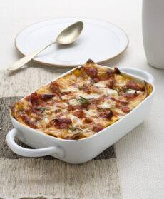 Le lasagne pronte rendono la preparazione più veloce, salsiccia e salame piccante rafforzano il gusto