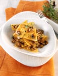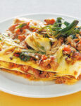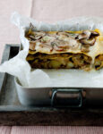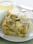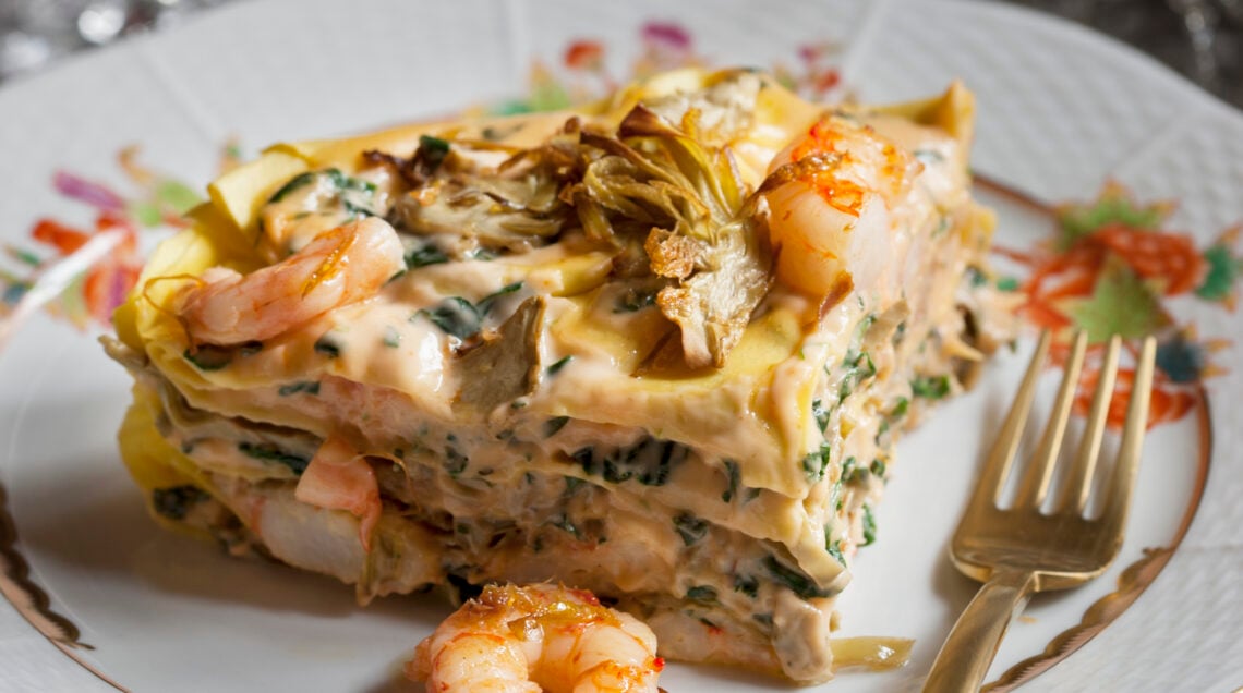 La pasta al forno a base di pesce è ideale anche per un buffet o un brunch: la pasta al forno con carciofi e granseola è arricchita con cipolline e scalogno, le lasagne al salmone in crosta di sfoglia sono un primo molto scenografico; più semplici, ma altrettanto gustose, le lasagne con ragù di polpo, ricotta e olive.