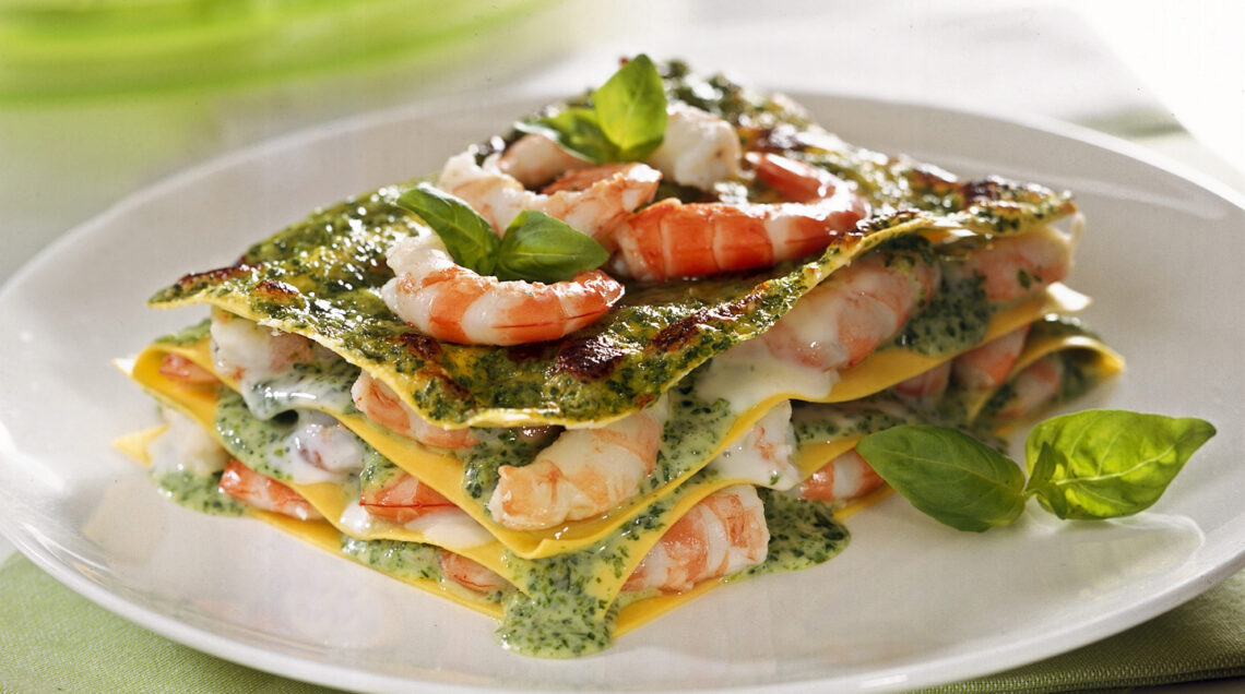 2 Lessate le lasagne in acqua salata e scolatele. Velate il fondo di una pirofila con 2 cucchiai di besciamella e procedete a strati in quest'ordine: lasagne, besciamella, gamberi (tenenetene da parte qualcuno per il decoro finale). Terminate con la besciamella.