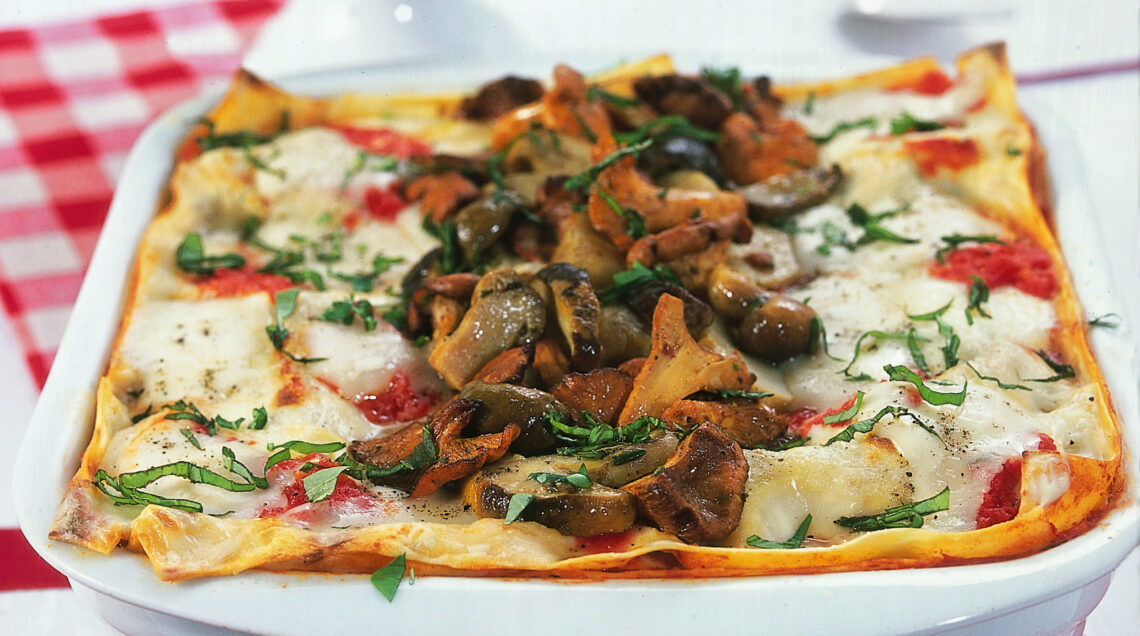 Le lasagne ai funghi sono arricchite con scamorza, speck e crema di cannellini, le lasagnette ai funghi porcini con farina di mais, lasagne di riso ribe con sugo ai funghi.