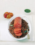 4) Completa e servi. Metti la placca in forno caldo a 220° e cuoci le lasagne per 7-8 minuti. Sforna, rifinisci le millefoglie con cotechino e crema di lenticchie rosse con scagliette di grana e servile con le rimanenti lenticchie scaldate con un po' di brodo.