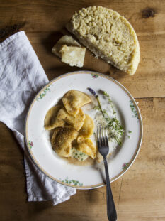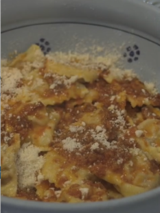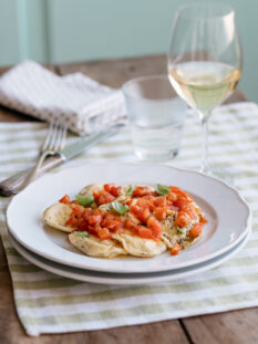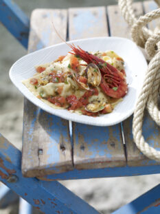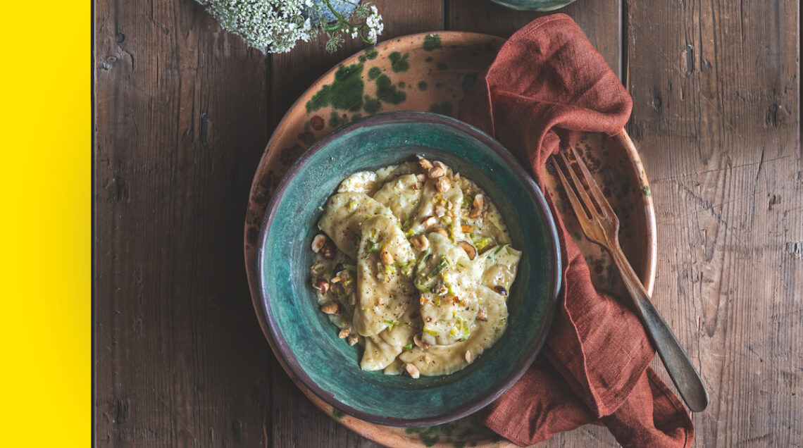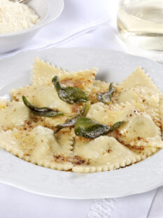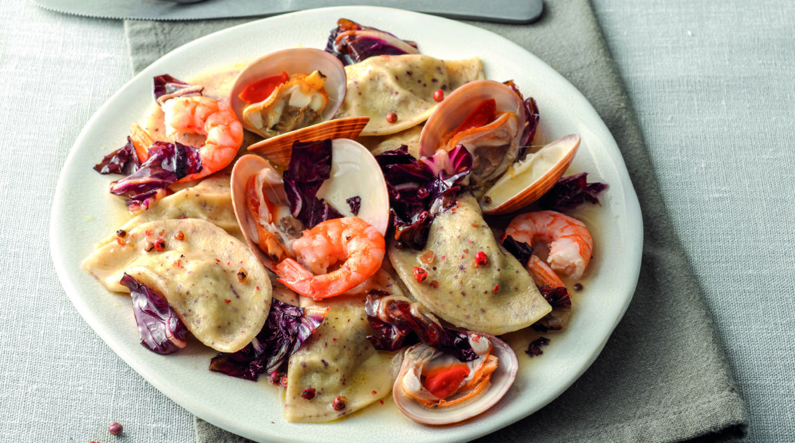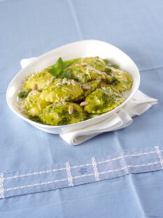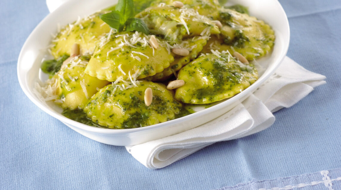 Raviolini di capra con pesto di menta, pinoli e pistacchi