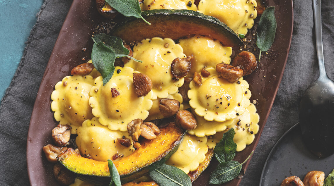 La dolcezza della zucca, delle castagne e del burro si aromizza con la croccantezza delle foglie di salvia e l'aroma piccantino del pepe