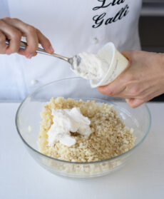 Preparate il ripieno: tritate il pecorino e i pinoli, raccogliete il mix in una ciotola e mescolatevi la ricotta, sale e pepe.