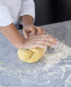 Mescolate gli ingredienti e impastate a piene mani fino a ottenere una pasta uniforme; avvolgetela in pellicola per alimenti e fatela riposare in luogo fresco per circa 2 ore.