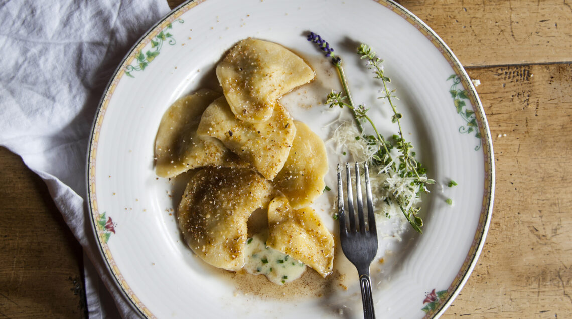 Una ricetta tradizionale trentina, questi ravioli sono farciti con un formaggio locale e conditi con burro fuso ed erba cipollina. Un primo rustico dal ripieno verace