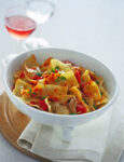 1) Prepara l’impasto. Forma la fontana con la farina "00", aggiungi un pizzico di sale e sguscia all’interno dell’incavo le uova, sbattile leggermente con la forchetta e comincia a impastare con le mani. Lavora l’impasto fino a ottenere una pasta liscia, avvolgila in un foglio di pellicola e fai riposare.