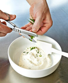 1) Prepara i ravioli al formaggio: impasta la farina con i tuorli, poca acqua, un cucchiaio di olio e un pizzico di sale e lascia riposare la pasta per 10-15 minuti. Lessa il riso e passalo al passaverdure; mescola insieme la ricotta, il caprino, sale, pepe e l'erba cipollina tagliuzzata.