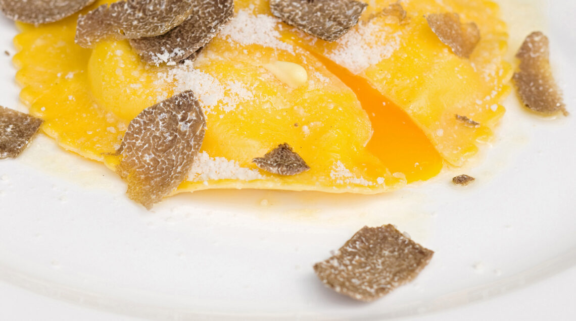 4) Cuoci i ravioloni in abbondante acqua bollente e salata, uno alla volta, poi scolali e condiscili con il burro fuso, il parmigiano e lamelle di tartufo. Gustali ben caldi.
