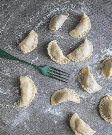 La sfoglia fatta in casa racchiude un morbido e sapido ripieno di patate, grana e toma. Cotti in pochi minuti, sono conditi con panna e nocciole