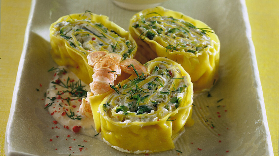 La pasta fresca è quella che si acquista per le lasagne, ma potete anche prepararla in casa e procedere con la ricetta. Il ripieno delicato di zucchine e ricotta si può rendere più saporito usando formaggio di capra, feta o tofu. Anche il condimento con i crostacei può diventare vegano, sostituendo i gamberoni con alghe o seitan.