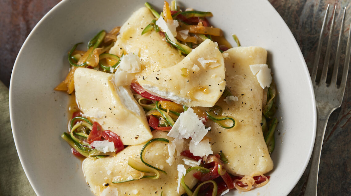 L'involucro di pasta a base di farina e patate è farcito da un sapido formaggio e condito con dolci verdure. Un primo piatto vegetariano, rustico e creativo
