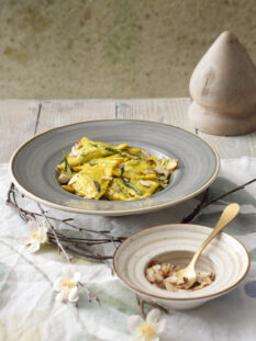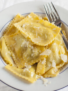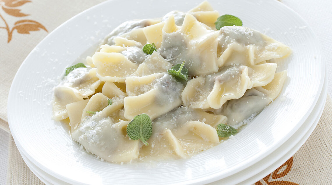 Tortelli di funghi porcini con vellutata di patate e ricotta stagionata