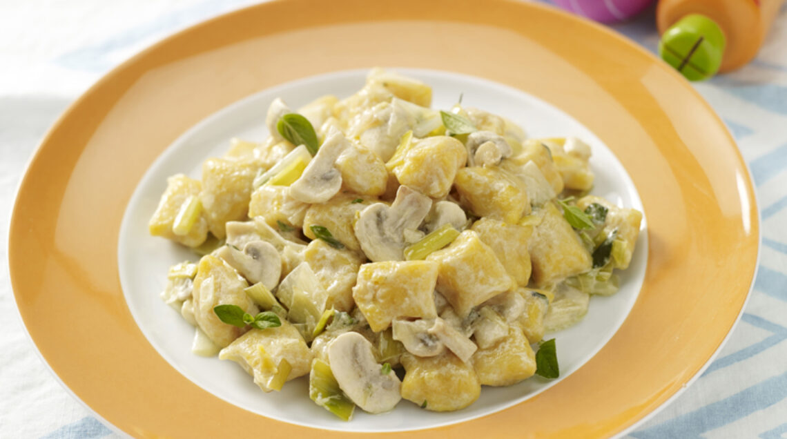 3) Unisci i funghi puliti e tagliali a fettine, sala, pepa e cuoci per 15 minuti. Aggiungi la robiola e mescola il tutto. Una volta pronto, versa gli gnocchi nell'acqua bollente salata. Scolali con il mestolo forato appena salgono a galla e condisci gli gnocchi in una terrina con il sugo di funghi.