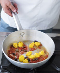 9) Trasferiscili nella padella con il condimento e falli insaporire per qualche istante.