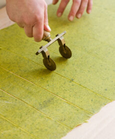 Riprendi la pasta dei tortelloni, stendila sottile e ricava con una rotella tanti quadrati di 6 cm di lato.