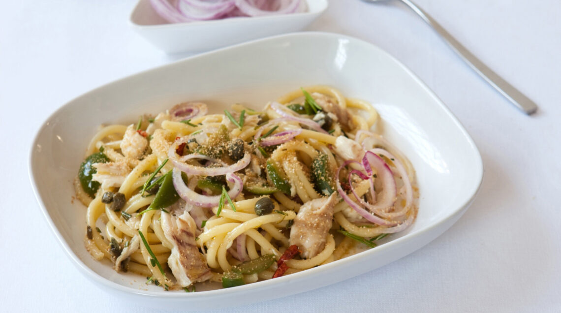 2) Scola i bucatini, falli saltare in padella con il condimento e aggiungi la cipolla cruda. Porta in tavola i bucatini alla cipolla e rosmarino e, a parte, il pane grattugiato tostato, che ciascuno dei commensali aggiungerà al momento sul proprio piatto.