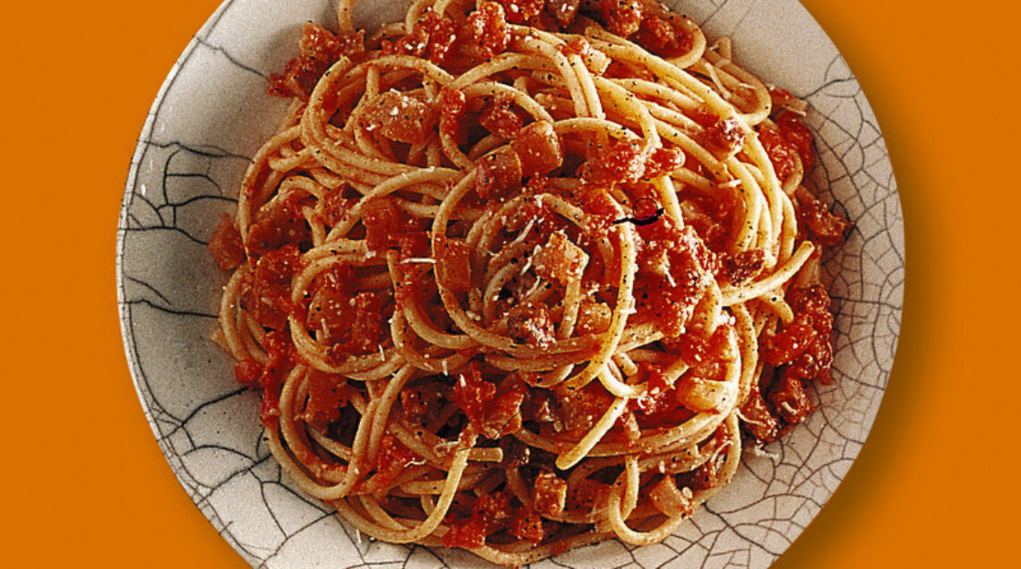 Condite gli spaghetti con la salsa per l'amatriciana, mescolate e servite passando a parte il restante pecorino.