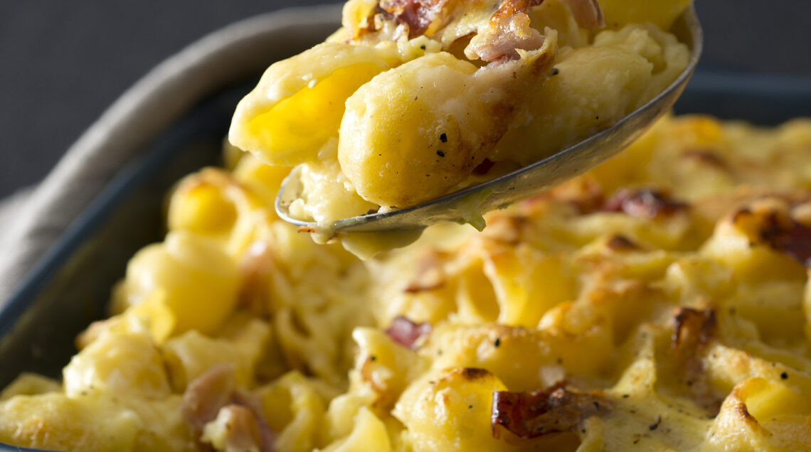 Il sapore è concentrato nella mornay, una salsa ricca a base di besciamella, che rende la pasta vellutata. Speck e scagliette di grana danno la spinta finale al piatto. Una passata in forno e le conchiglie, morbide e croccanti, sono pronte