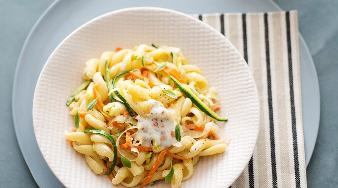 Crema di parmigiano e verdure per condire i fusilli