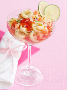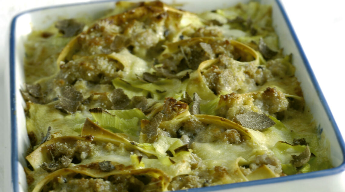 Le caramelle agli scampetti con salsa di porri e zafferano