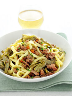 Reginette con carciofi al lardo croccante