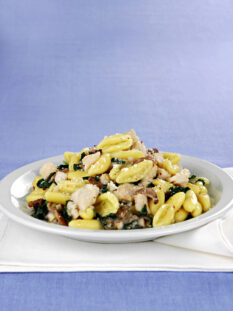 I cavatelli con fiori di zucca e briciole di salsiccia