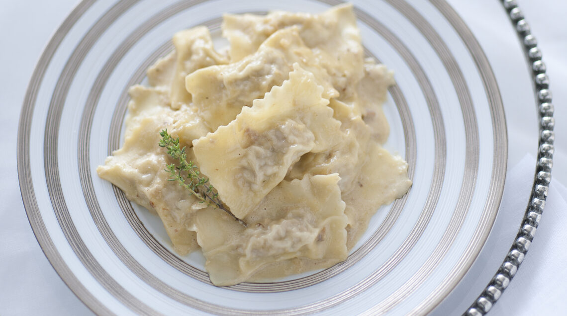 1) Stendi la sfoglia fino a 1 mm di spessore e distribuisci su metà di essa il ripieno di carne a mucchietti. Copri con l’altra metà della pasta e sigilla il ripieno con le mani. Con l’aiuto della rotella dentellata, ritaglia gli agnolotti di forma rettangolare e tuffali in una pentola con abbondante acqua bollente salata.