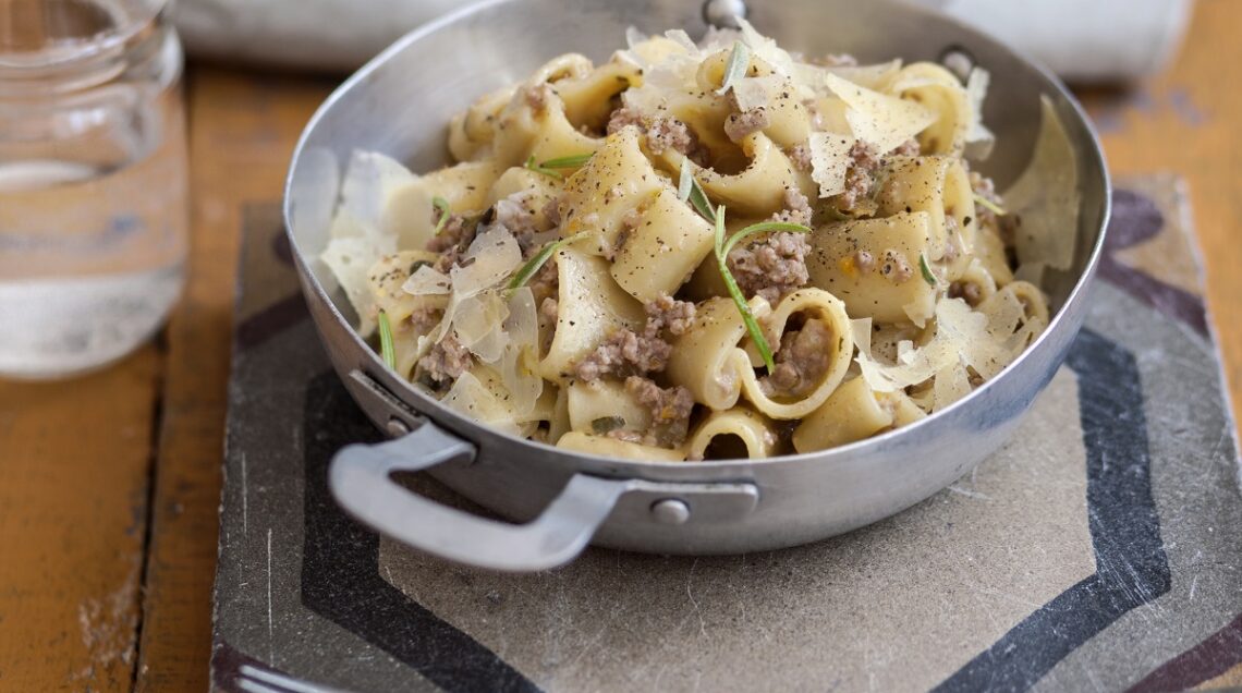 3) Lessate i campotti, scolateli e versateli nella ciotola con le uova, aggiungete il ragù e mescolate velocemente.