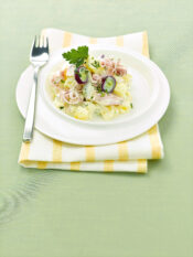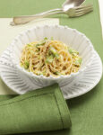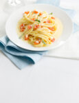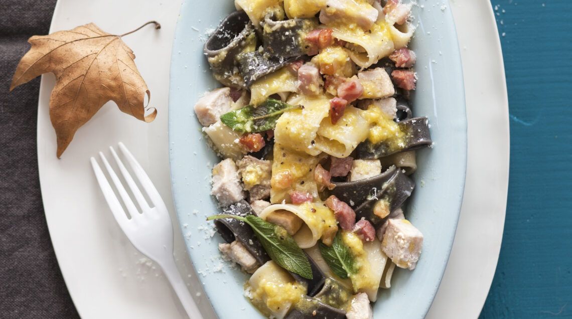 4) Completa la carbonara. Scola la calamarata al dente e versala nella padella con il pesce spada e la pancetta, a fuoco spento. Unisci alla pasta la crema di tuorli e mescola velocemente in modo che si addensi un po’ e la pasta prenda colore. Se necessario, irrora con qualche cucchiaio di acqua della pasta, per rendere cremoso il condimento. Insaporisci la carbonara di pesce spada alla salvia con il pecorino restante, mescola ancora una volta e servi subito.