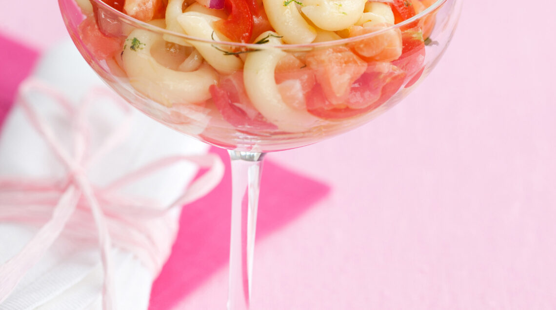 2) Lessa la pasta in abbondante acqua salata, scolala al dente e raffreddala sotto acqua corrente; sgocciolala bene e trasferiscila in un’insalatiera. Scola il salmone e uniscilo alla pasta. Unisci anche i pomodorini, la scorza e il succo di lime tenuti da parte, la cipolla, un dl scarso di olio e sale e pepe quanto basta.