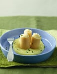 3) Cuoci i paccheri in abbondante acqua bollente salata, scolali al dente e passali sotto l'acqua corrente. Metti il composto di pollo e prosciutto in una tasca da pasticciere con bocchetta liscia e farcisci i paccheri.