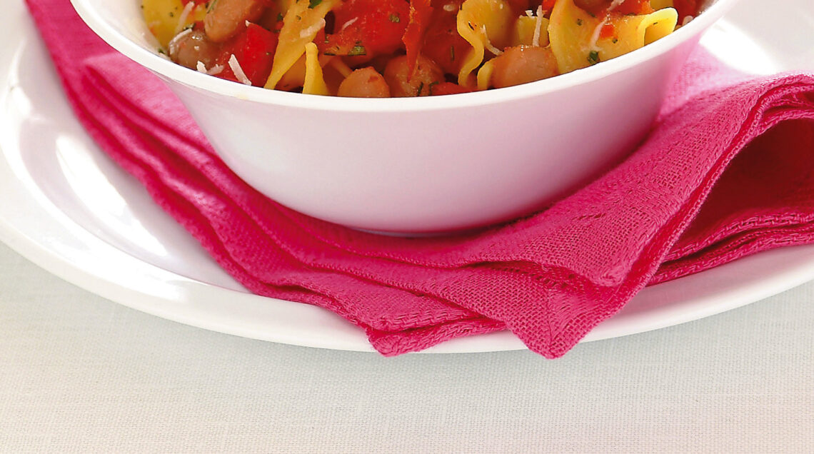 1) Per preparare questa pasta con pancetta e fagioli, scotta i pomodori in acqua bollente per pochi secondi, scolali, lasciali raffreddare, elimina la buccia e i semini e spezzetta la polpa a dadini.